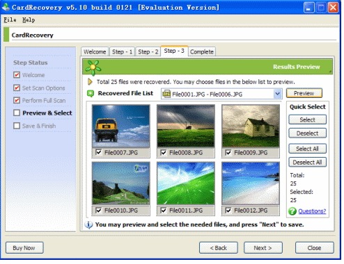 CardRecovery™ is the leading photo recovery software for memory card used by digital camera. It can effectively recover lost, deleted, corrupted or formatted photos and video files from various memory cards. It supports almost all memory card types including SD (Secure Digital) Card, CF (Compact Flash) Card, xD Picture Card, Memory Stick, MicroDrive, SmartMedia Card, MMC (MultiMediaCard), MicroSD, MiniSD, SDHC and more.